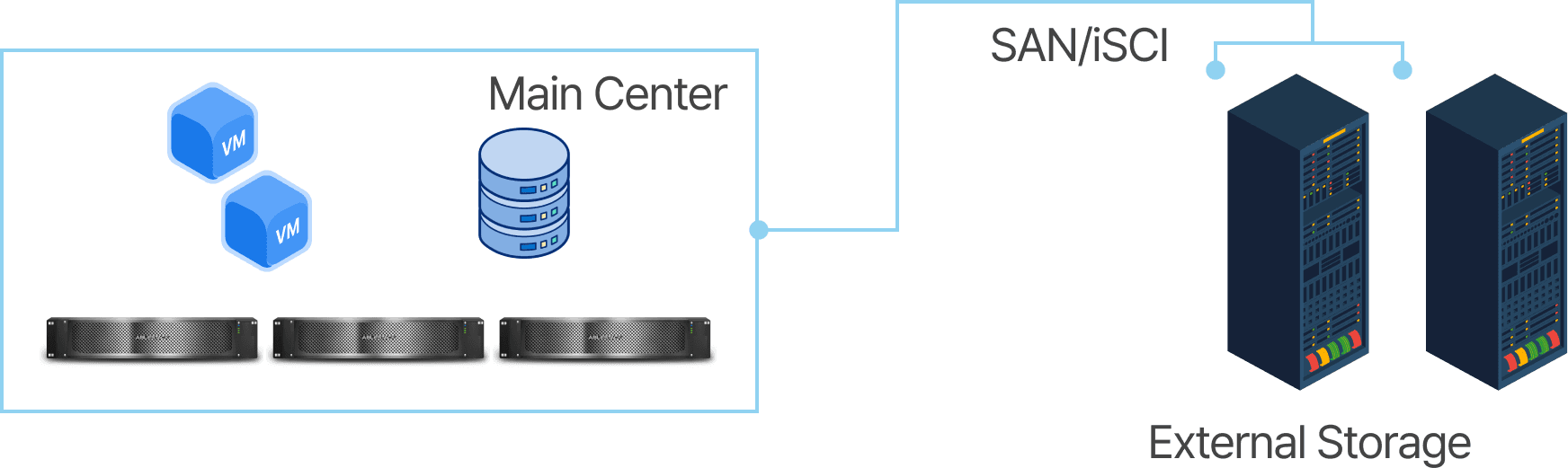 Supports integration with external storage (SAN/iSCSI), enabling reuse of existing infrastructure.